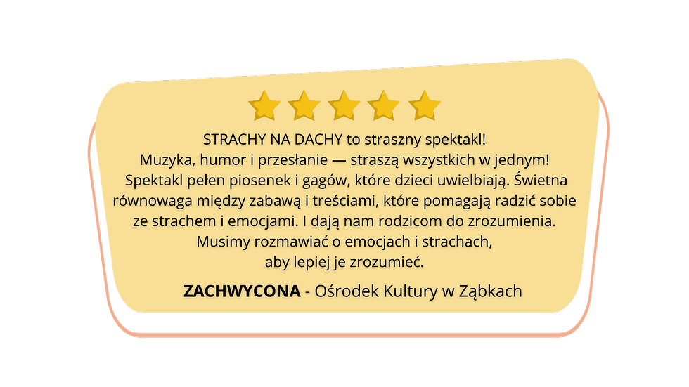 OPIS FABUŁY: Zapraszamy wszystkich śmiałych gości, co nie boją się zgrzytać zębami do Strasznej Doliny, gdzie wszystko co straszne... wcale takie straszne nie jest! W mroczno-zabawnym klimacie poznamy Aurorę Zmorę – outsiderkę o artystycznej duszy, która wraz ze swoim Pieskiem Kostkiem zmierzy się z własnymi lękami. Na jej drodze pojawią się Trzy Strachy by poddać ją próbie i pomóc odkryć, że prawdziwa odwaga rodzi się w sercu! Czeka Was pełna emocji opowieść o dorastaniu, radzeniu sobie ze stratą i oswajaniu trudnych uczuć, okraszona halloweenową muzyką, gagami i dyniowym poczuciem humoru!